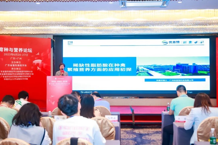 大會首日(6月26日上午10:10),優(yōu)百特生命科學(xué)研究院院長、農(nóng)牧行業(yè)油脂化工跨界融合領(lǐng)軍人才——孫麗華博士,在【育種與營養(yǎng)論壇】上分享了題為《稀缺性脂肪酸在種禽繁殖營養(yǎng)方面的應(yīng)用》的專題報告。系統(tǒng)闡述了稀缺性脂肪酸的作用機理、理想模型構(gòu)建以及在種禽飼料中的精準(zhǔn)應(yīng)用方案,為種禽高效、健康養(yǎng)殖提供了創(chuàng)新性的營養(yǎng)解決思路。同時,孫博士深入剖析了種禽繁殖性能提升面臨的營養(yǎng)挑戰(zhàn),指出特定稀缺性脂肪酸在調(diào)控種禽內(nèi)分泌、改善生殖器官健康、提升種蛋品質(zhì)與受精率、保障雛禽活力等方面扮演著不可替代的關(guān)鍵角色。