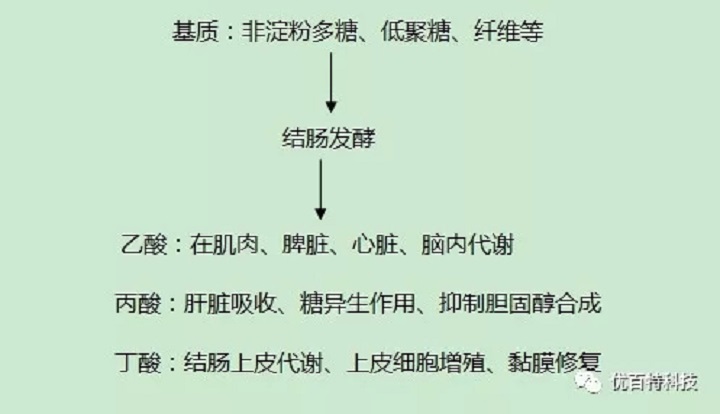 結(jié)腸內(nèi)發(fā)酵產(chǎn)生的短鏈脂肪酸可為結(jié)腸上皮提供60%~70%的能量。其中丁酸是結(jié)腸首要的能量來(lái)源,具有多種重要作用。